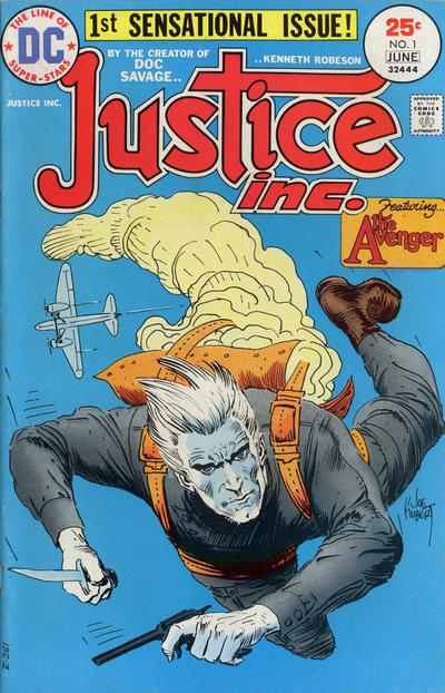 1st Appearance of Alice Benson (Richard Benson’s wife); 1st Appearance of Alicia Benson (Richard Benson’s daughter); 1st Appearance of Smitty (Algernon Heathcote Smith); 1st Appearance of the Avenger (Richard Benson); Death of Alice Benson (Richard Benson’s wife); Death of Alicia Benson (Richard Benson’s daughter); Origin of the Avenger (Richard Benson); Adapts The Avenger #1 (pulp magazine; May-Jun issue; Sep 1939); This Night, an Avenger is Born!; Justice Incorporated (text); Dennis O’Neil, Allan Asherman; Al McWilliams, Dick Giordano